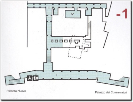 Il Palazzo dei Conservatori decorato dagli affreschi con la storia di Roma ospita i più famosi bronzi capitolini, come la Lupa, lo Spinario ed il Bruto; la grande aula vetrata realizzata al primo piano del palazzo ospita la statua equestre di Marco Aurelio, una volta collocata al centro della piazza, e i resti del tempio di Giove Capitolino.
