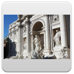 Mostra terminale dell’acquedotto Vergine, unico degli acquedotti antichi ininterrottamente in uso fino ai nostri giorni, è la più nota delle fontane romane e la più famosa nel mondo per la sua scenografica monumentalità. All’origine della fontana vi è una leggenda legata ad una fanciulla che avrebbe indicato ai soldati di Agrippa, genero di Augusto di rientro a Roma dopo la vittoriosa battaglia di Azio contro Antonio, il punto in cui sgorgava l'Acqua Vergine (dal latino virgo, “fanciulla”), il cui acquedotto che convogliava l’acqua a Roma, fu poi costruito proprio da Agrippa nel 19 a.C.. In quella che poi sarà la piazza odierna fece costruire una fontana eretta a ridosso delle arcate dell’acquedotto. Per tutto il medioevo le cose rimasero immutate, poi nella seconda metà del Quattrocento, ebbe luogo la prima opera di sistemazione e restauro dell'acquedotto voluta da Papa Nicolò V ed affidata ai progetti di Leon Battista Alberti e di Bernardo Rossellino; successivamente Urbano VIII Barberini conferì l'incarico di progettare una nuova fontana al Bernini che comincerà con il demolire il prospetto rinascimentale preesistente. I lavori, tuttavia, si limitarono alla messa in opera di un basamento ad esedra, addossato agli edifici poi inglobati nel palazzo Poli, con una vasca antistante in cui confluivano tre bocche d'acqua. Soltanto nel 1730, 90 anni più tardi, papa Clemente XII bandì un concorso per la realizzazione definitiva della fontana di Trevi vinto da Nicola Salvi che progettò la più spettacolare e maestosa fontana di Roma. I lavori durarono vent'anni, dal 1732 al 1751: la fontana, una grande realizzazione scenografica, è completamente addossata ad un fianco di Palazzo Poli, e risulta, quindi, essere una felice fusione di architettura e scultura.