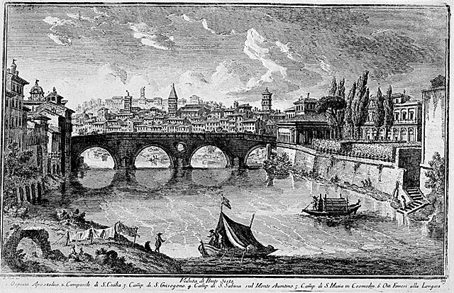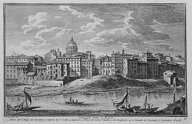 Giuseppe Vasi, nato a Corleone (Palermo) il 27 agosto 1710, è stato uno dei più importanti incisori di veduta nella Roma del diciottesimo secolo. Giunto a Roma nel 1736 già educato all'arte incisoria grazie agli studi intrapresi in Sicilia, dopo un triennio di apprendistato entrò a far parte della cerchia di papa Clemente XII. Questi contatti gli garantirono un posto importante all'interno della Calcografia Camerale, per la quale Vasi iniziò a realizzare vedute dei monumenti di Roma moderna.