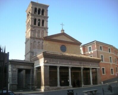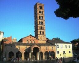 La chiesa di Santa Maria in Cosmedin fu eretta nel secolo VI sopra una grande aula porticata di età flavia, di cui restano varie colonne incorporate nell'edificio, che sorgeva presso due templi consacrati a Ercole Invitto e a Cerere. Ingrandita da Adriano I nel secolo VIII fu affidata ai Greci che, fuggiti alla persecuzioni degli iconoclasti d'Oriente, si erano stabiliti nei quartieri presso il Tevere. I greci la chiamarono "Schola Graeca", ma l'abbellirono a tal punto da farle meritare l'appellativo di Kosmidion (parola greca significante ornamento) da cui Cosmedin. Dedicata poi a Maria prese il nome di Santa Maria in Cosmedin. Rimaneggiata nel corso dei secoli, la chiesa venne riportata alle forme attuali a partire dal 1890. L’interno è costituito da tre navate, il pavimento il tabernacolo, l’altare ed il coro risalgono al XIII secolo. Nella cappella di destra si trova una Madonna con il Bambino attribuita a Cimabue, anche se alcuni storici ritengono risalga addirittura al V secolo. Il campanile, a sette piani di bifore e trifore, è fra i più belli tra quelli di tipo romanico.