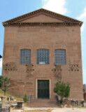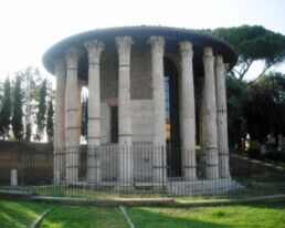 Edificato sulle rovine di un tempio preesistente, di cui ha conservato inalterate le caratteristiche, quello comunemente chiamato tempio di Vesta ma che in realtà è il Tempio di Ercole Vincitore, risale al IV secolo d.C.. E’ composto da una cella rotonda circondata da un portico con venti colonne di ordine corinzio e costituisce un esempio di luogo di culto tra i più raffinati del Foro. E' il più antico edificio in marmo ad essere giunto fino ad oggi; nel medioevo fu trasformato in chiesa dedicata a Santo Stefano delle Carrozze, ma poi, nel 1560, fu ritrovata nel Tevere un'immagine della Madonna che avrebbe mandato un raggio di sole: tale evento fu ritenuto un prodigio ed il Tempio fu dedicato a Santa Maria del Sole. Nell’interno è conservato un’affresco della fine del quattrocento con una Madonna col Bambino.