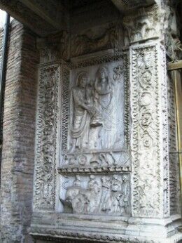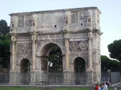L'Arco di Costantino, posto all'inizio dell'antica via dei Trionfi, percorsa dai condottieri vittoriosi, generali ed imperatori, è quello più imponente ed in condizioni migliori. Fu fatto erigere nel 315 dal popolo e dal senato per commemorare la vittoria su Massenzio del 312 e festeggiare i 10 anni di governo dell'Imperatore. L'arco è un esempio di reimpiego di materiali antichi, data la difficoltà di reperire già in epoca costantiniana a Roma materiali originali: nelle decorazioni si ritrovano infatti rilievi e sculture provenienti da altri monumenti, dal foro di Traiano fino ai fregi di Marco Aurelio. Si tratta di una usanza che si protrasse poi per tutto il Medioevo.
