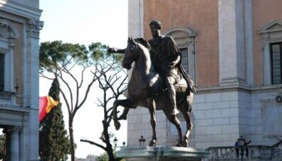 Piazza del Campidoglio rappresenta il primo esempio di piazza monumentale della Roma moderna e la Statua equestre di Marco Aurelio è senz'altro il cuore dell'intero complesso. La statua rimase fino al 1981 sul piedistallo originale, poi dopo il restauro del 1990, è stato sostituita da una copia, mentre l'originale è custodito nel Museo Capitolino, all'interno di Palazzo Nuovo. Nel 1563 Michelangelo cominciò la ricostruzione di Palazzo dei Conservatori, sede della Magistratura elettiva di Roma, risalente probabilmente al XII secolo e poi ricostruito nuovamente nel 1400. Guidetto Guidetti e Giacomo della Porta lavorarono fino al 1568 alla risistemazione dell'edificio, dalla facciata, alla scala, fino al portico sul cortile, proseguendo l'opera iniziata dal maestro. Nel 1619 fu inserita una fontana, successivamente (1665-1667) una campana voluta da Alessandro VII e infine nel 1720 Alessandro Specchi realizzò un altro portico.