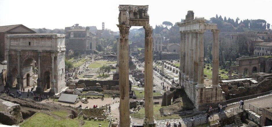 Quello che per secoli fu il centro della vita pubblica di Roma antica, il Foro Romano, era in origine una valle paludosa, compresa tra i colli Capitolino, Palatino, Viminale e Quirinale e occupata da una delle più antiche necropoli dell’abitato. Il prosciugamento di questa zona, avvenuto verso il 600 a.C. grazie alla costruzione della Cloaca Massima, diede il via, in epoca repubblicana, alla sua trasformazione in cuore commerciale, giuridico, religioso e politico della città. Raggiunse la sistemazione definitiva sotto Cesare ed Augusto e mantenne a lungo le funzioni di luogo di rappresentanza. Il Foro era collegato al Palatino e al Campidoglio tramite la via Sacra; uomini politici ed imperatori lo sottoposero ripetutamente a trasformazioni: veniva infatti spesso arricchito con la realizzazione di opere e la ristrutturazione di edifici e monumenti. Il Foro costituisce, dunque, il più grande complesso di monumenti dell’antica Roma a noi pervenuto. Dopo la caduta dell’impero, rimase coperto per secoli sotto uno spesso strato di terreno, per lo più adibito a pascolo, conosciuto come Campo Vaccino. L'intensa attività edilizia che si aprì con il ritorno della sede papale in Roma, dopo l'esilio avignonese, provocò lo sfruttamento intensivo dei materiali antichi: l'ampia area del Foro si trasformò in una gigantesca e quasi inesauribile cava di marmi e pietre, distruggendo monumenti che si erano conservati nei secoli, protetti da una spessa coltre di terra. Questa pratica vandalica finì nel XVII secolo, ma la liberazione sistematica delle rovine iniziò soltanto nel XIX secolo, anche se occorrerà attendere la fine del secolo stesso per liberare praticamente tutta l'area oggi visibile.