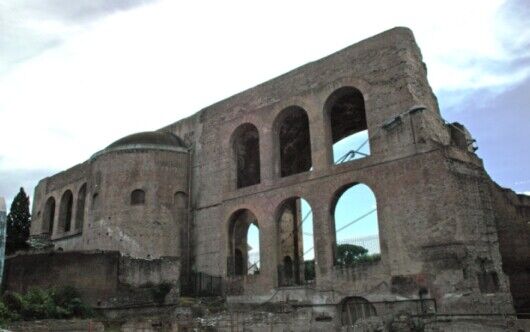 Il Tempio di Romolo costituisce il vestibolo della chiesa, una sorta di atrio circolare in mattoni, coperto da una cupola, con due sale rettangolari laterali ed un portico rientrante, che introduce nella chiesa vera e propria, ricavata appunto in una sala del Foro di Vespasiano. La chiesa fu consacrata nel 526 ai due fratelli, Cosma e Damiano, medici e martiri di origine araba; nel 1632 Urbano VIII ordinò il radicale rifacimento della basilica, lasciando però inalterati i mosaici dell'abside, risalenti al VI e VII secolo, che ritraggono Cristo tra Pietro e Paolo, mentre presentano i due fratelli martiri. Molto diversa dalle basiliche Emilia e Giulia, la Basilica di Massenzio è l'ultima edificata a Roma. Realizzata nel 305, presenta una struttura, a pianta rettangolare, i cui resti danno l'idea della grandiosità dell'insieme. Quando Costantino sconfisse Massenzio, a Ponte Milvio nel 312, la basilica fu ultimata dal vincitore, che vi apportò dalle modifiche: l'entrata fu trasferita sulla via Sacra e venne creato un portico a quattro colonne in porfido per introdurre alla basilica. Sull'opposto lato lungo fu ideata un'abside. Statue colossali arricchivano l'edificio, quella di Costantino, per esempio, campeggiava originariamente nell'abside ovest: oggi i frammenti che ne rimangono sono custoditi nel cortile del Palazzo dei Conservatori sul Campidoglio. Come le altre basiliche romane, anche questa fu pensata per svolgere funzioni diverse, dall'amministrazione della giustizia a piazza d'affari. Il tetto della Basilica era ricoperto di lastre di bronzo dorate, che nel VII secolo furono asportate da Onorio I e riutilizzate per la copertura dell'antica basilica di San Pietro.