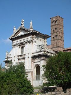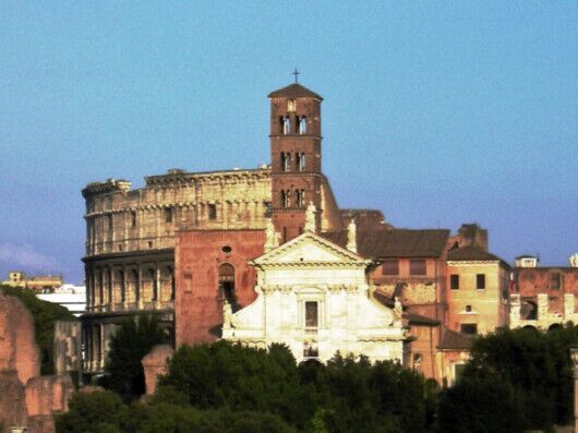 Giunti all’angolo con il podio del Tempio di Venere e Roma, si prende la strada che lo costeggia, il clivo di Venere Felice e si giunge alla chiesa di Santa Francesca Romana. La chiesa di Santa Maria Nova, oggi Santa Francesca Romana, fu eretta nel IX secolo sul preesistente oratorio, dedicato ai S.S. Pietro e Paolo, voluto da Paolo I. Nella seconda metà del X secolo fu ulteriormente ingrandita e prese il nome di Nova per distinguerla da Santa Maria Antiqua, antecedente, posta nel vicino Foro Romano. Nel XII secolo fu restaurata ed a quest'epoca risalgono il campanile e le decorazioni dell'abside che ritraggono la Madonna col Bambino e Santi. Nel XV secolo fu consacrata alla Santa di cui porta il nome, che fondò il monastero di Tor de' Specchi, il cui ordine si dedica ai poveri e agli infermi. Nella sacrestia è custodita una preziosa immagine del V secolo, un'icona che ritrae la Vergine, ed altri dipinti del XVI e XVII secolo.