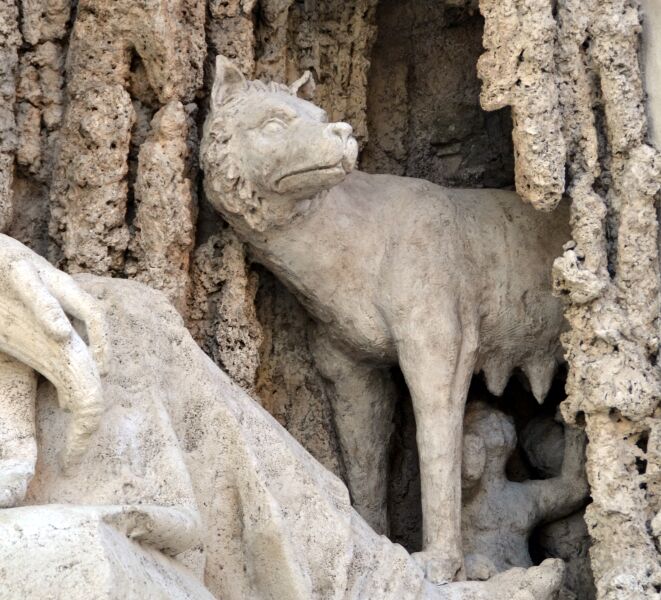 La Fontana di Diana, quella verso palazzo Barberini, raffigura la Fedeltà: fiancheggiata da un simbolico cane e la luna semi-nascosta fra i capelli; ha come sfondo una finestra con ornati vegetali.
