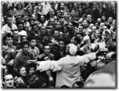 Seconda Guerra Mondiale, Roma è sotto l’occupazione tedesca. Alle 11,02 avviene il primo bombardamento aereo alleato di Roma: l’obiettivo è lo Scalo San Lorenzo, ma i grappoli di bombe devastano una vasta area della città compresa tra piazzale Sisto V, piazzale San Lorenzo e piazza Porta Maggiore. Particolarmente colpiti sono il Policlinico, l’Università e i quartieri Prenestino e Tiburtino con la basilica di San Lorenzo al Verano. Caddero almeno quattromila bombe: i morti furono 3000 e i feriti fra gli 11.000 e i 12.000. Oltre alla basilica devastata dalle bombe, crollarono interi palazzi: con il bombardamento ancora in corso arrivò papa Pio XII per dare conforto al popolo di Roma. Era infatti uscito dal Vaticano prima del cessato allarme per cui, in quell’occasione, Pio XII rischiò la propria vita, non curante della propria incolumità per compiere questo atto pastorale verso i fedeli della sua diocesi. La gente accorse immediatamente come una fiumana; Papa Pacelli scese dalla macchina, pregò con le persone accorse e allora si levò quel grido di pace che di lì a poco venne ascoltato: dopo meno di due mesi ci fu l’armistizio.