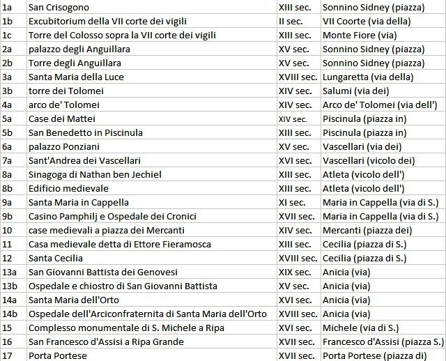 Il percorso di questa passeggiata è stata l’occasione per andare alla scoperta dell’area di Trastevere che da viale Trastevere va verso il Tevere e porta Portese. Si tratta di una zona che nel medioevo vedeva i suoi spazi subordinati alle attività del porto di Ripa Grande: molte attività mercantili ma anche strutture destinate all’accoglienza e al sostegno dei soggetti più deboli della Roma del tempo.